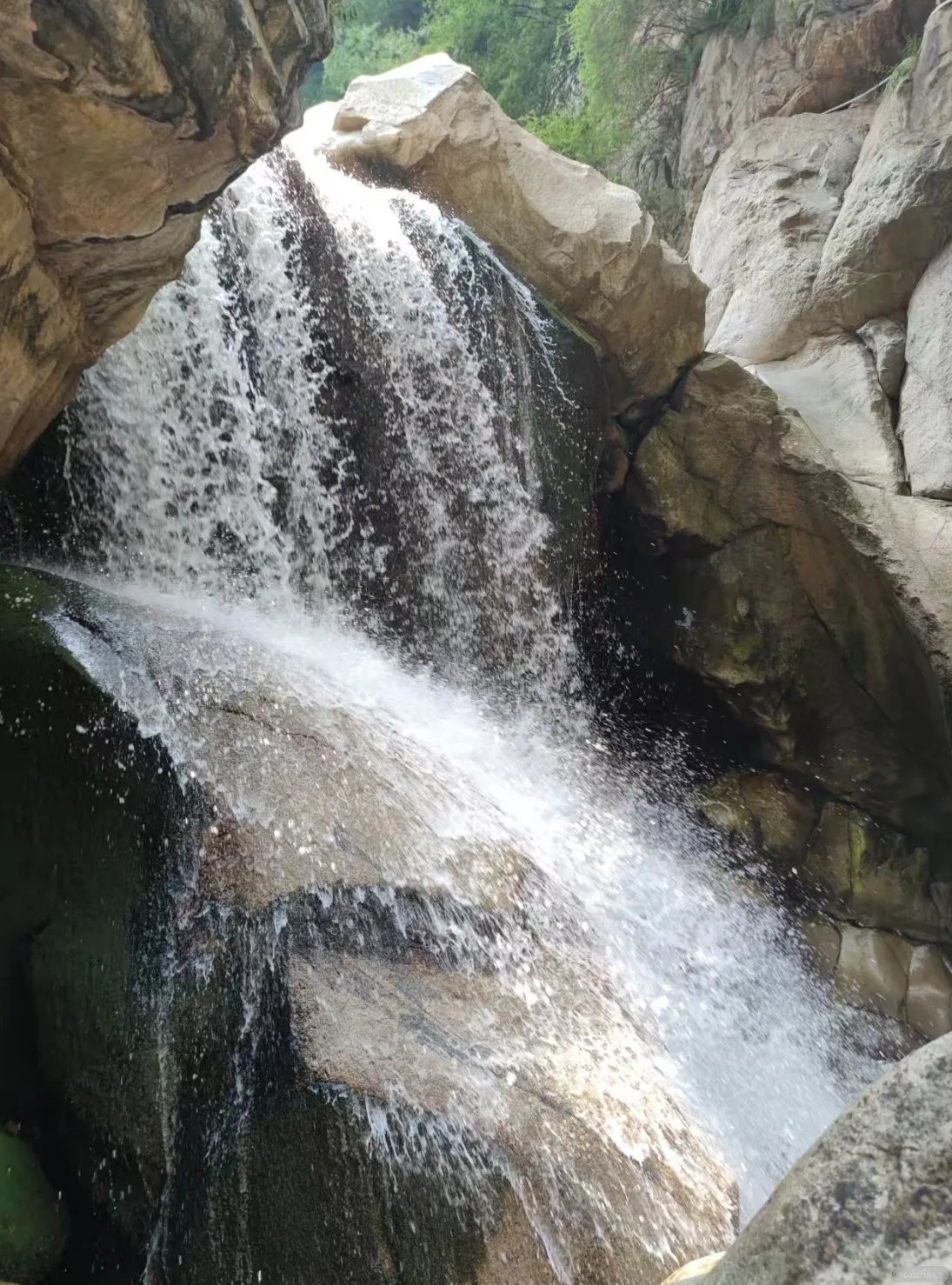 山泉从红河谷的峭壁飞泻而下,拍打着黝黑的巨石,溅起万千银珠。瀑布的轰鸣与溪流的淙响在山谷间交织成天然交响,每滴水都折射着秦岭最野性的光芒,在花岗岩上刻出永不重复的水韵诗行。